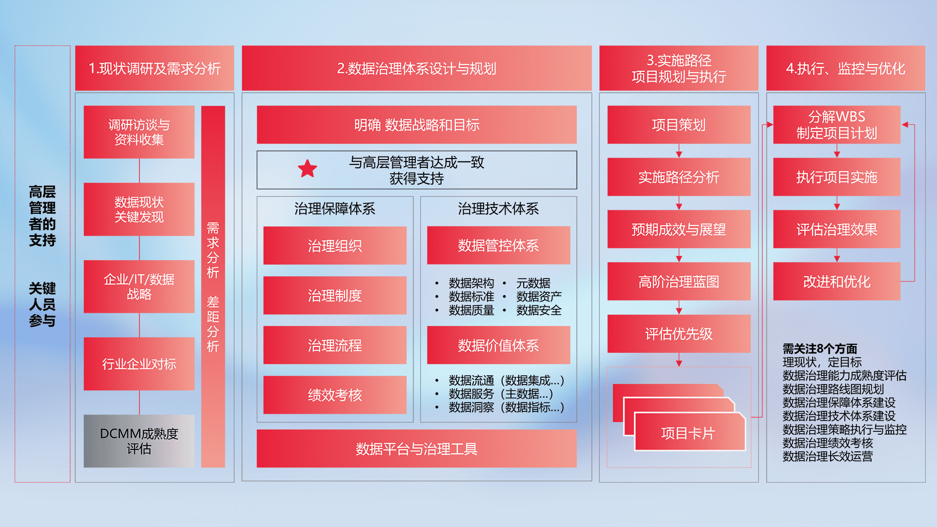制定并执行统一的数据标准,,,规范数据定义和格式,,,消除冗余和不一致性,,实现跨部门和跨系统的数据一致性,,,为企业提供标准化的数据基础。。